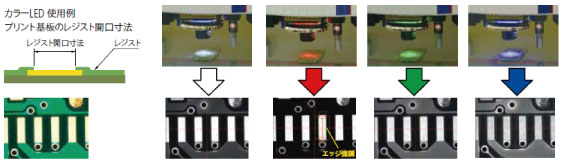 照明を赤・緑・青・白と変える事によりこれまでの白色光では測定できなかったエッジが検出可能となりました。